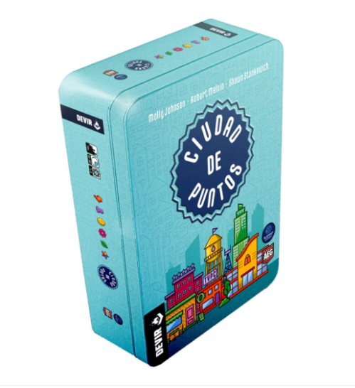 De los creadores del exitoso Ensalada de puntos llega Ciudad de Puntos, un juego rápido y divertido de selección de cartas para toda la familia. Hay más de un centenar de cartas de edificio únicas, así que podrás crear una ciudad totalmente distinta cada vez que juegues. Ciudad de puntos parte del mismo concepto de seleccionar cartas y crear las mejores combinaciones, y le añade una nueva dimensión de gestión de recursos y creación de motor de juego. El resultado es un juego fácil de aprender, pero desafiante para todo el mundo. Diseñado y desarrollado por Molly Johnson, Robert Melvin y Shawn Stankewich, este título se puede disfrutar en solitario o en grupos de hasta 4 personas, a partir de 10 años, en partidas de entre 15 y 30 minutos de duración. Ciudad de puntos es un juego de selección de cartas y creación de motor de juego en el que los jugadores consiguen recursos y construyen su ciudad mediante cartas de edificio, compitiendo para conseguir más puntos que los demás. Los edificios construidos ayudan a los jugadores a obtener bonificaciones, puntos y recursos permanentes para los turnos sucesivos. ¡El jugador que construya la ciudad que valga más puntos será el ganador! A lo largo de la partida, las cartas del mercado central mostrarán recursos y distintos edificios. En su turno, los jugadores decidirán si prefieren tomar recursos o gastarlos para construir edificios y así ampliar su ciudad. Poco a poco, los edificios construidos también generarán recursos, de modo que cada vez será más fácil construir nuevas cartas. Además de obtener puntos por las cartas construidas, los jugadores pueden sumar puntos de bonificación gracias a las fichas cívicas, un premio que otorgan los edificios públicos, y que sirve para sumar puntos gracias a los recursos producidos. Ciudad de puntos también cuenta con un modo de juego solitario, en el que el jugador se enfrentará a un contrincante automatizado con tres niveles de dificultad. Ya sea en solitario o en grupo, Ciudad de puntos es un juego fácil de preparar y de aprender, que promete muchas horas de diversión. ¡Construye la ciudad más valiosa y gana la partida!